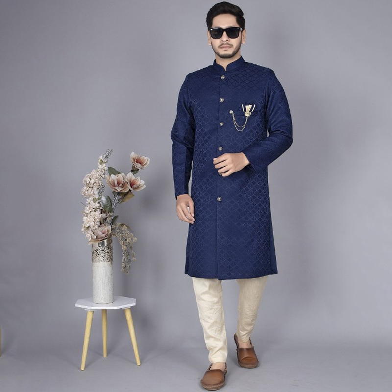 Men Self-Design Cotton Indowestern Sherwani Set